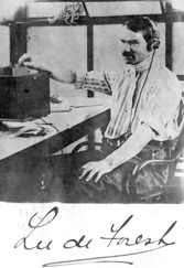 Lee de Forest, 1873-1961, was an inventor and scholar who made significant contributions to the science of electronic communications during the first three decades of the Twentieth Century. He held numerous patents on the technology of radio, television and film.